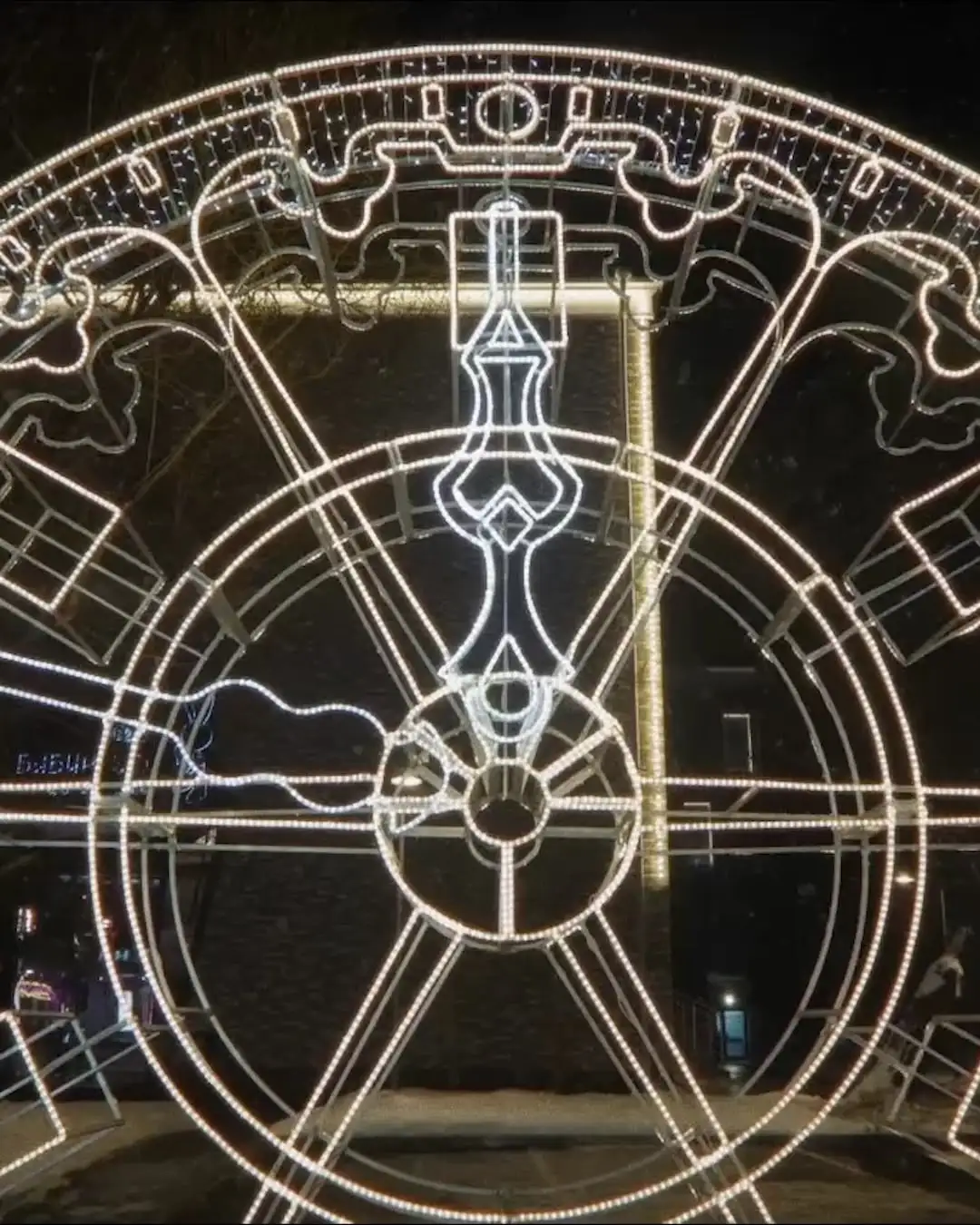Компания LS illumination создала масштабную новогоднюю композицию «Санкт-Петербург», включив в неё узнаваемые символы города и яркие световые элементы.